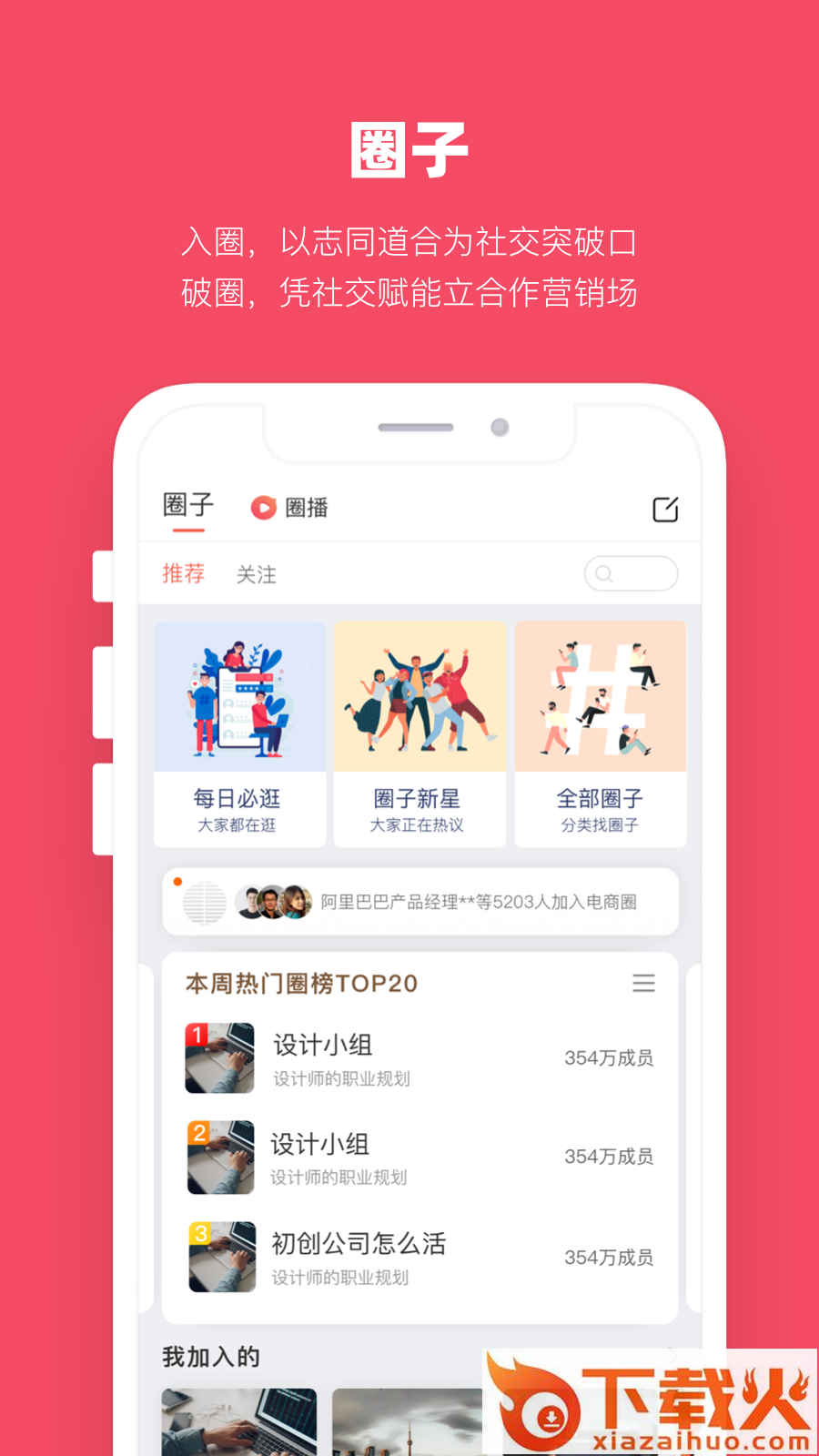 当代职场人的兴趣圈,社交赋能的营销场。在聚合中裂变用户的价值,多方联合助力,帮助用户成功破圈。