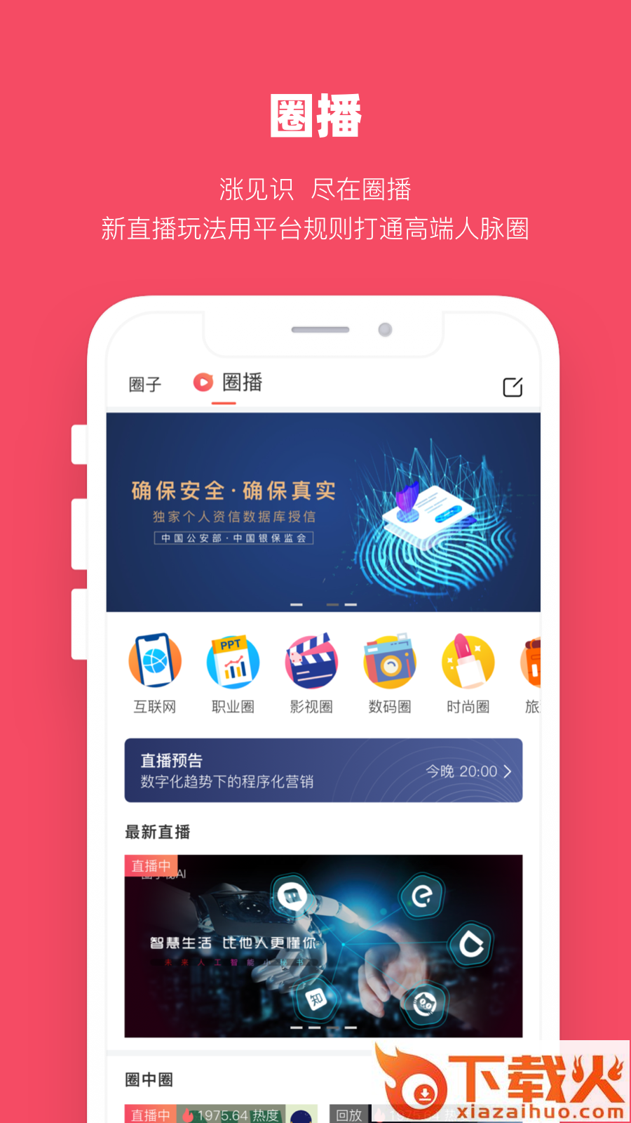 加入金圈社交,在圈子遇见志趣相同的合作伙伴,在圈播结识行业大咖碰撞商业火花。