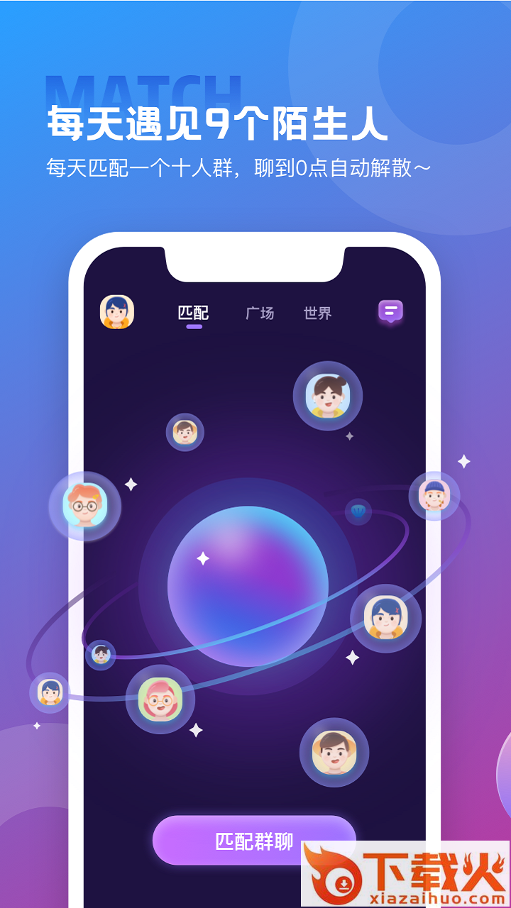 9APP,每天都会给你匹配9个人,让你们在群里聊上一整天,每晚0点系统会自动解散这个群,所以如果遇到和你聊得来的人,加个好友吧。