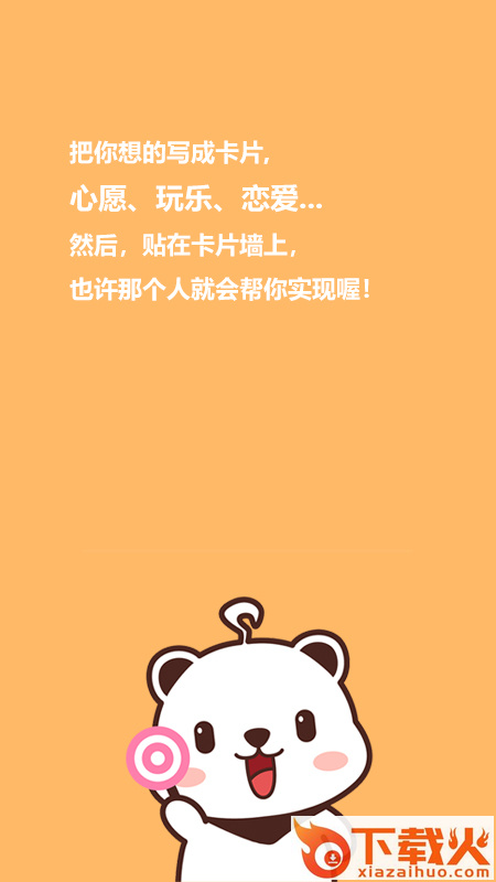 在这里,你可以把你想的一切写成卡片(心愿、玩乐、恋爱、交友等等)然后贴在卡片墙上,你可以和他人分享所有,在分享的同时也许就会有一个人来帮助你完成你想的那些事儿!