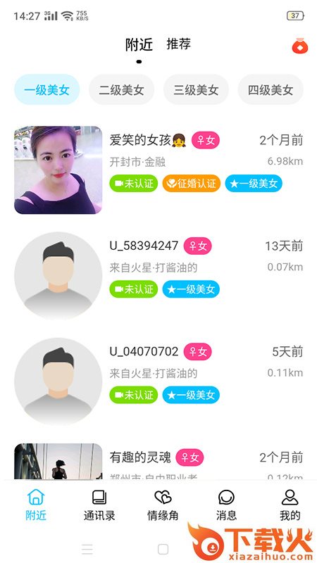 心心情缘综合服务平台,单身男女专属的同城交友平台。用户可以通过软件匹配异性,系统会根据喜好推送,支持语音、视频在线交流,还能通过个人空间主页查看图文视频动态信息,让聊天多一点话题。