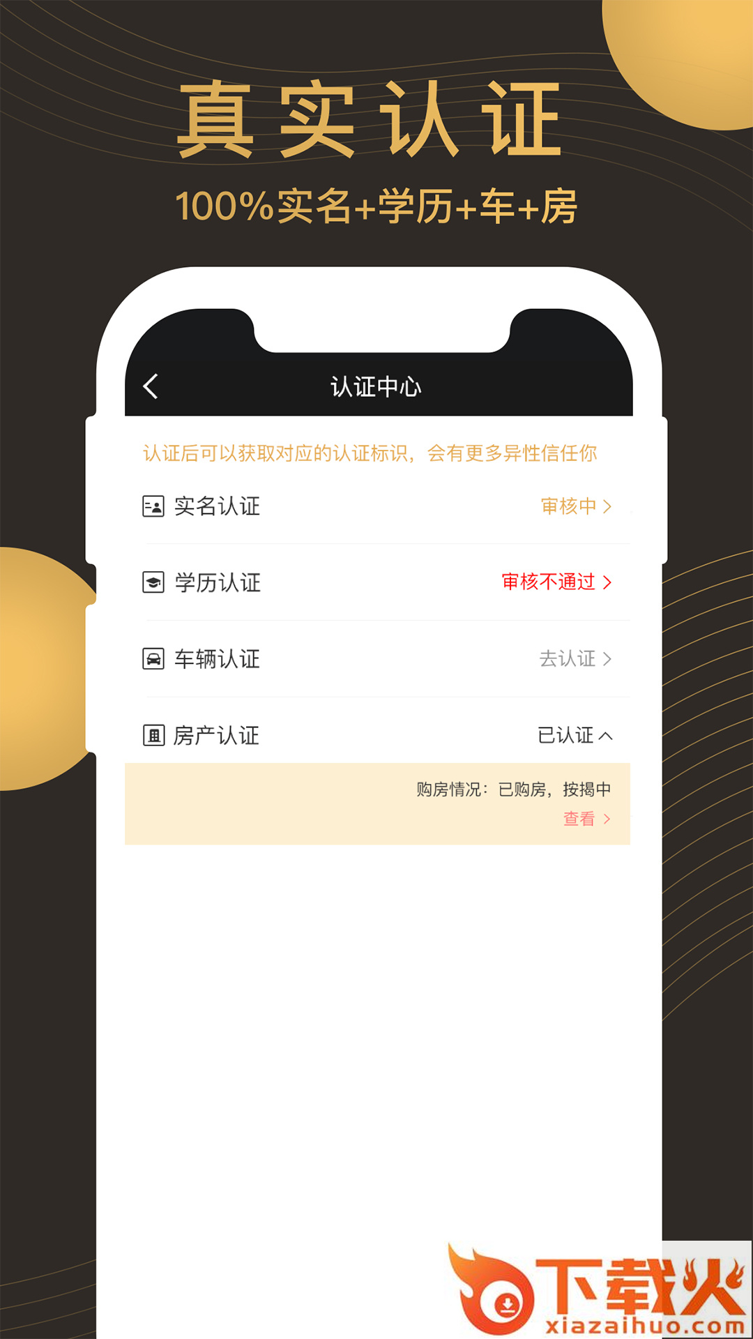真实认证,100%实名+学历+车+房