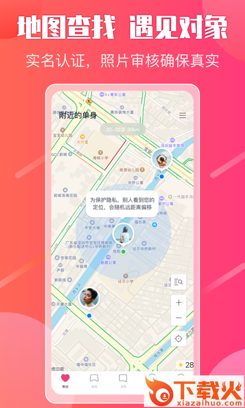 【地图找人】:地图展示用户位置,犹如身临其境于线下交友场景。