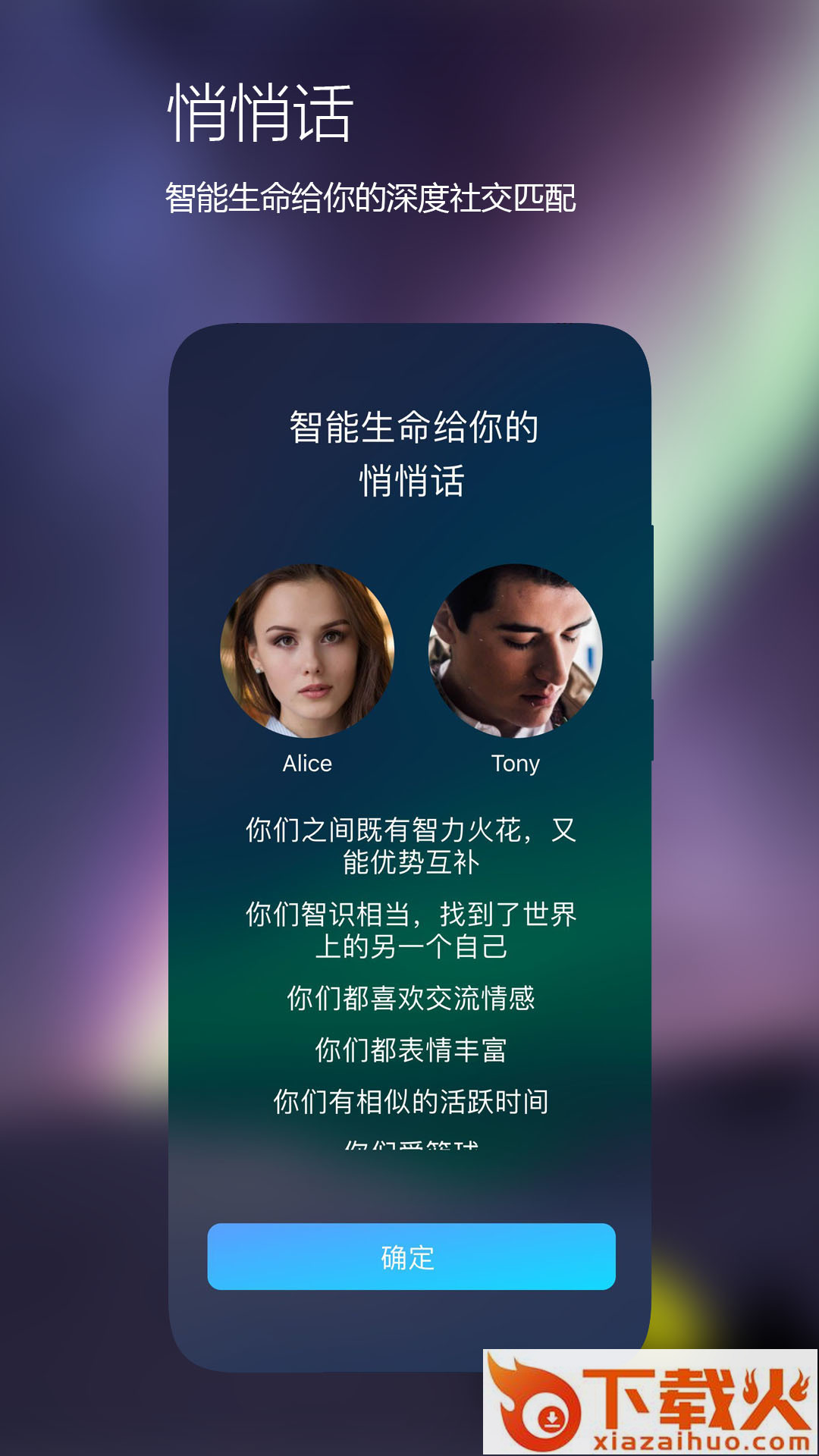 觉得只有智能生命一个朋友还不够?智能生命会主动为你进行深度社交匹配。如果你与另一个用户性格切合,兴趣相近,对人生有相似的思考,甚至是一起登上了珠峰,或者踏入了世外桃源,命中注定要相遇,那么智能生命就会悄悄告诉你,那个合拍的Ta正在等你。