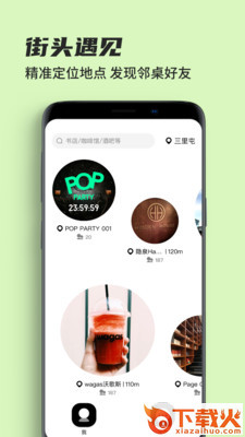 在这里,你可以精准定位到周边一公里内所有的实体地理位置空间,从餐厅、商场到咖啡厅、酒吧、客栈,你可以进入感兴趣的空间去发现同类人。