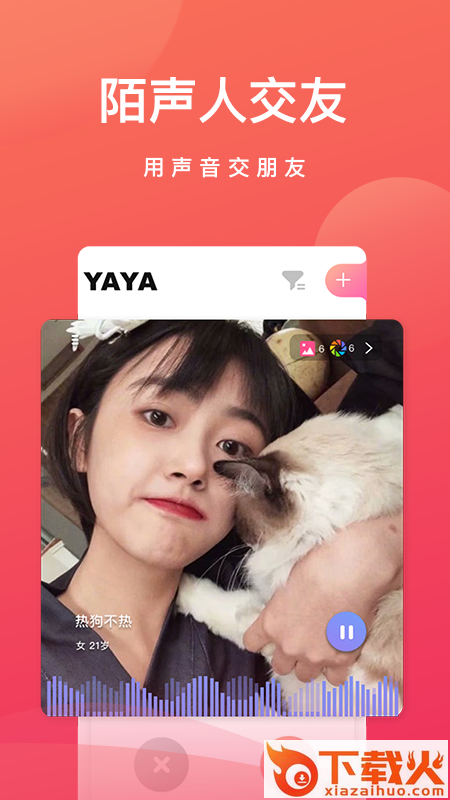 呀呀app下载,一款以声音为主题打造的轻松互动社交平台,来呀呀语音app小伙伴们可以随心匹配喜欢的声音,全国交友遇见更多精彩,欢迎下载了解。