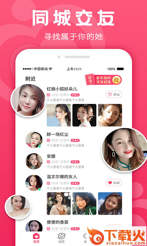 众里寻她是一款专门为单身男女打造的附近/同城约会的app,