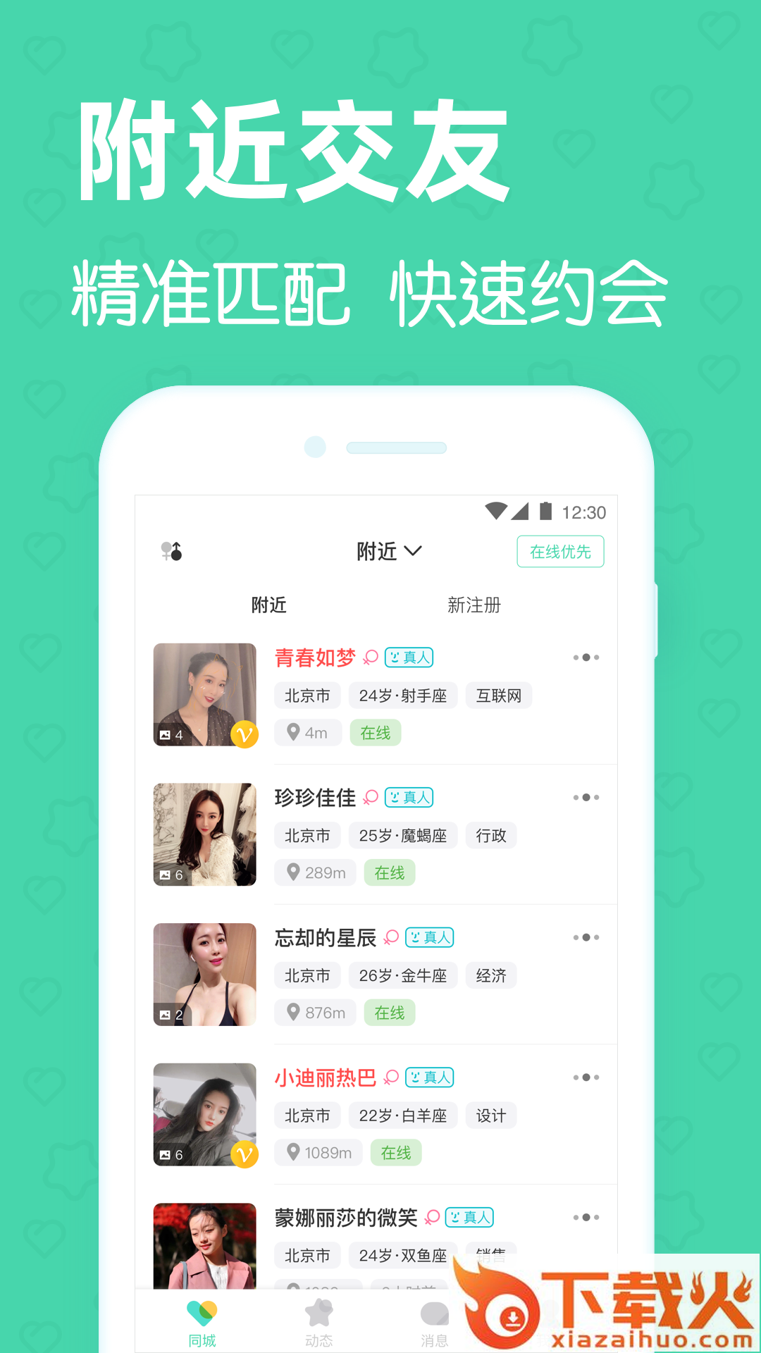 同城交友找对象app,一款信息真实可靠的同城交友软件,可根据用户需求精准推荐合适对象,资料真实,轻松聊天,快速脱单,找到合适对象。