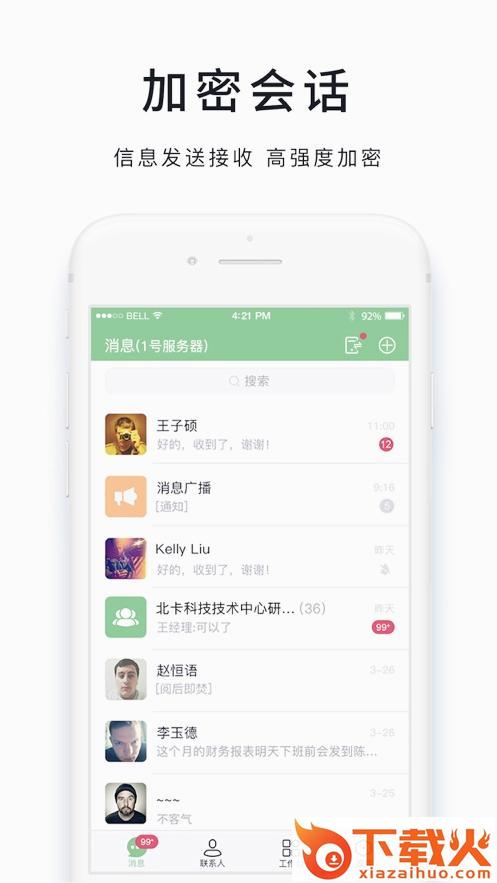 咔信安全通信app,适用于企业的内部通讯软件,安全加密,所有信息安全传输,让交流更放心。使用咔信app,企业内部加密会话,安全共享文件资源,让工作沟通更省心。...