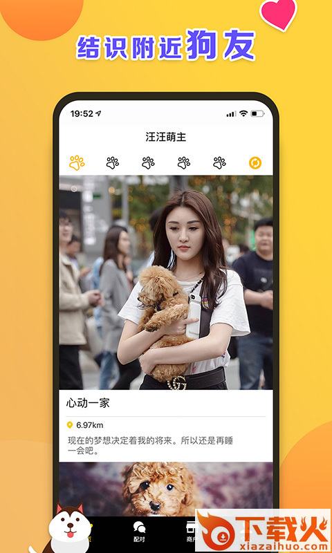 汪汪萌主是一款专供养狗的爱狗人士在线交流的app。在这里,你可以轻松结交附近的狗友,一键配对后就能在线聊天,相互分享狗狗的日常生活。还有优选宠物商店等你来逛哦,觉得这款软件还不错的小伙伴快来下载吧!