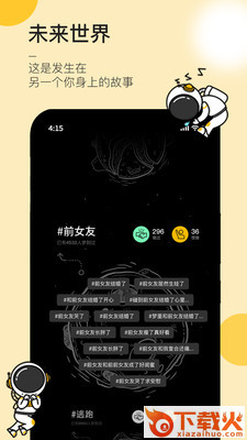 4、星球页面:梦发生在平行的未来世界。每个梦的情节由你、我、他、她、它的脚本编制而成。着陆到你感兴趣的主题星球,去分享你做过的梦,记录“你梦到了谁”,看看“谁梦到了你”~