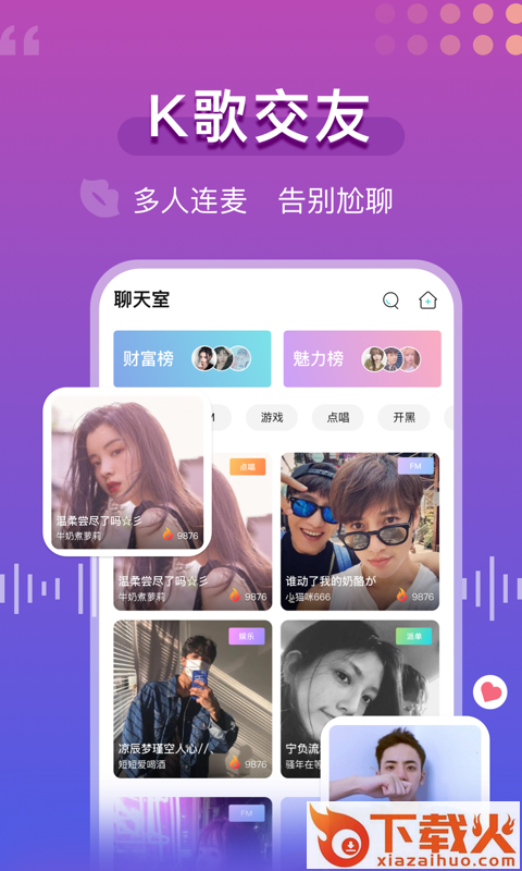 3、语音聊天邂逅甜蜜CP,互动点歌、配对交友排解生活的孤单乏味