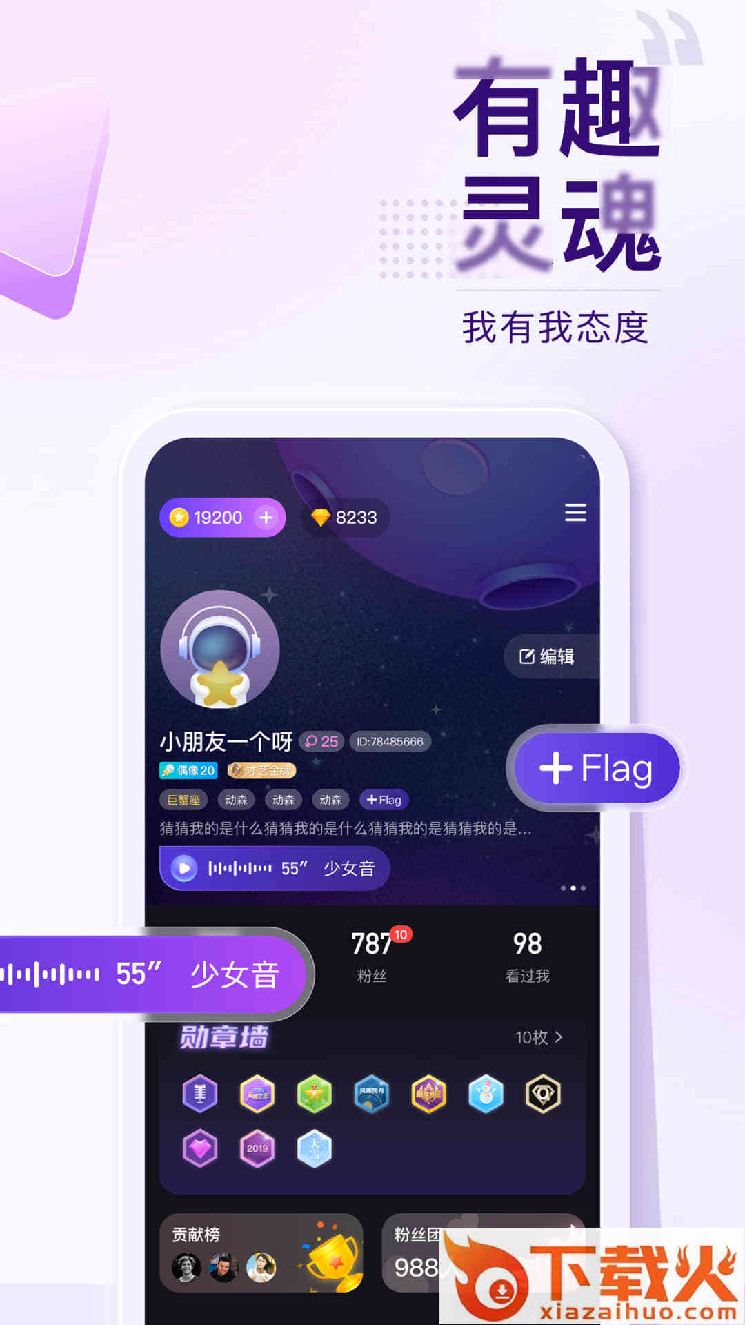 Flag语音社交App,万有音力玩法,拉近你我之间的拉近;音色鉴定超有趣,给你更多可能扩列另一半;在音缘里偶遇,找到越聊越懂你的人;还有唱歌聊天,开黑找队友其乐融融;更多有趣灵魂,展现我有我态度。...