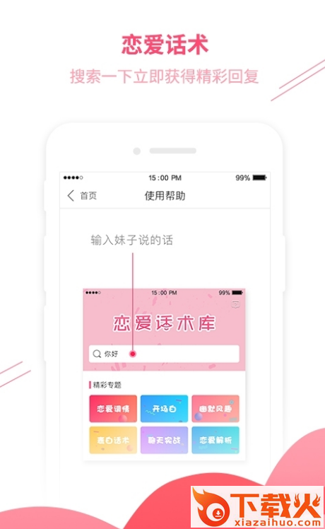 情话话术是一款非常不错的话术指导软件,拥有非常丰富的恋爱话术库,目的就是帮助不会表达的人,当情商不够用时它就能帮到你,可以通过它去找到在不同场景下适用的聊天话术,为用户带来了超多的攻略与技巧,感兴趣的朋友快来下载吧!