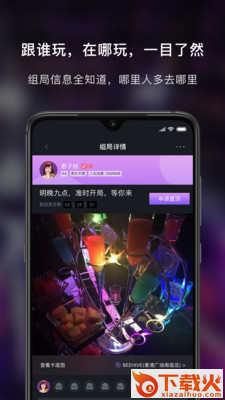 3、发布组局――用户可以在APP内发布组局信息,并且提出参加组局的必要条件,例如:组局地点XX夜店、开始时间、人均消费以及理想加入对象等。