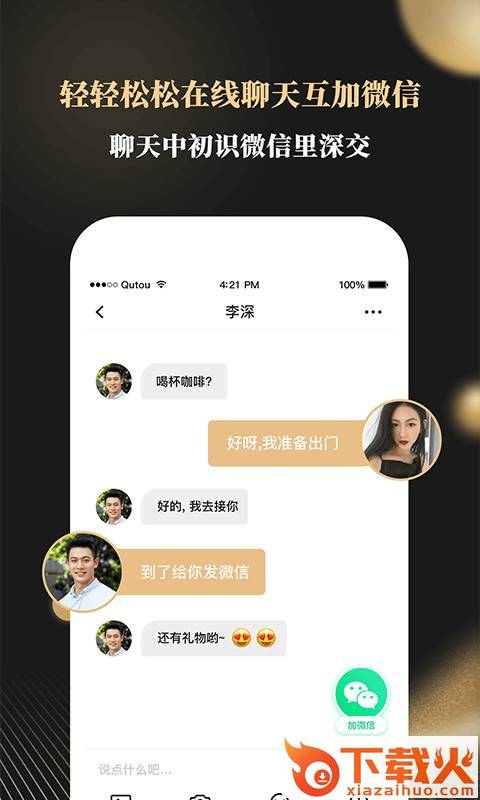 3.在线聊天互加微信:在铂金婚恋上聊天初识,互相添加微信后进行深交