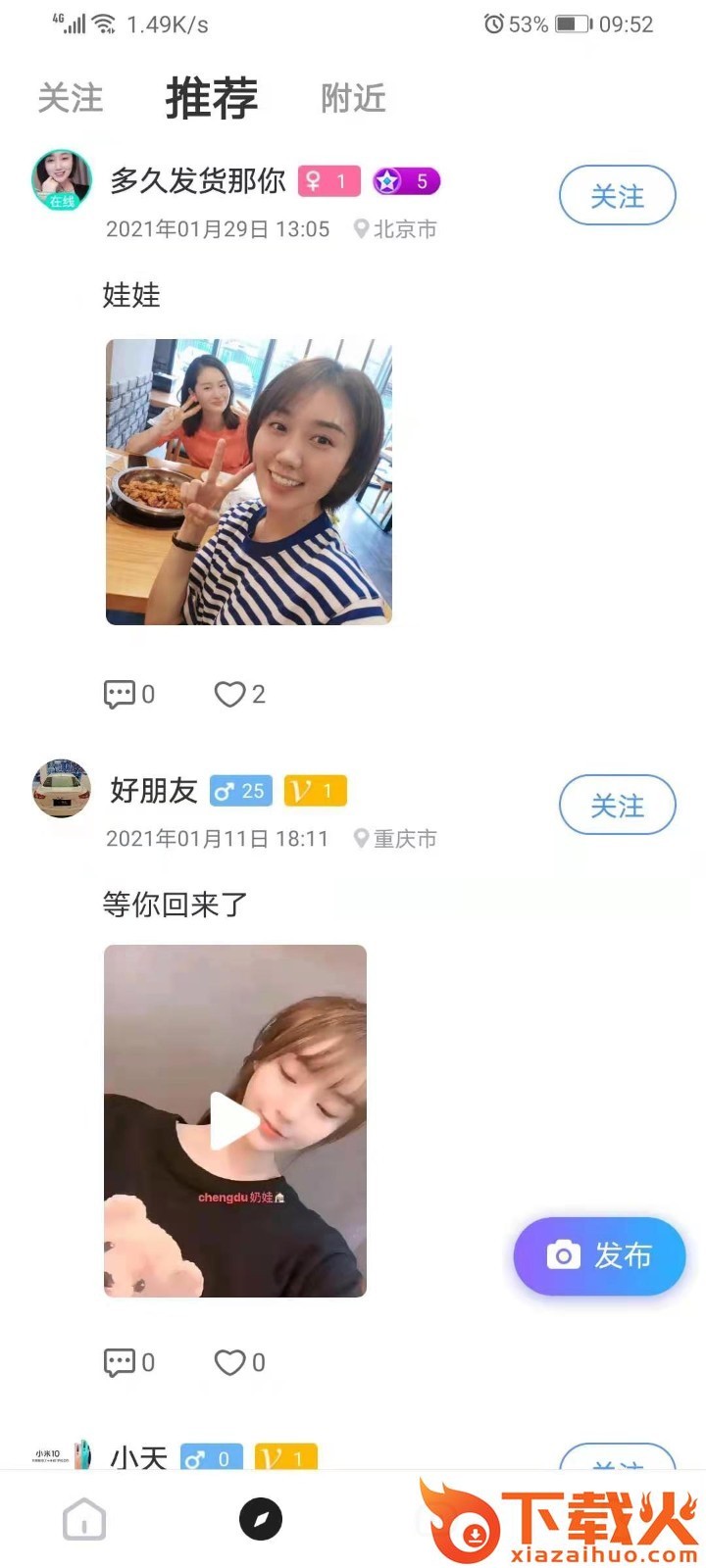 可以发布自己的动态内容,点赞、评论其他用户的动态内容,是一个多形式多功能的社交应用。