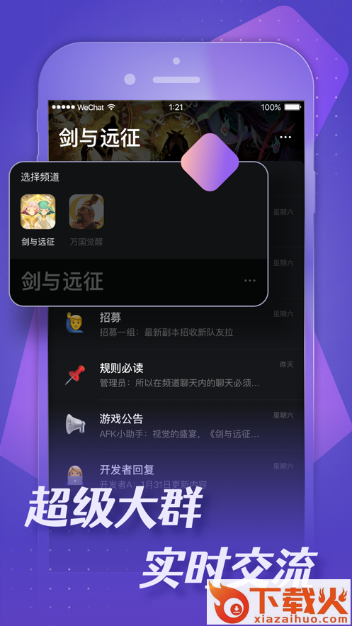 游戏玩家齐聚大群,战术策略在线讨论、八卦异闻即时开聊,畅所欲言,分享快乐。
