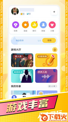 人人爱玩app,年轻人的兴趣互动交友平台,多种趣味玩法尽在其中,各种好玩小游戏应有尽有,桌游组局,趣味互动,结识更多爱玩小伙伴,让生活不孤单。