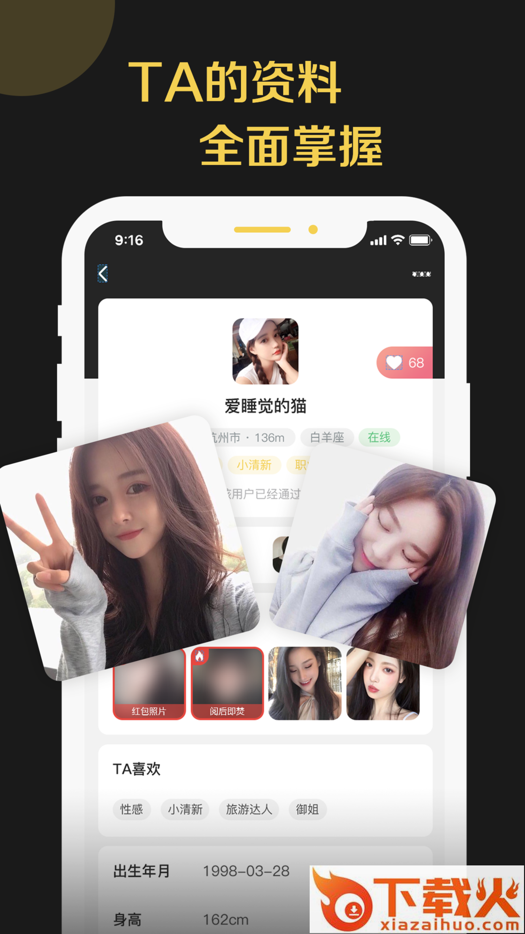 爱驭(同城交友)app,专为同城小伙伴打造的兴趣交友平台,分享个人精彩动态,查看好友资料信息,真实可靠,随时随地约会交友,结识同城志趣相投好友。