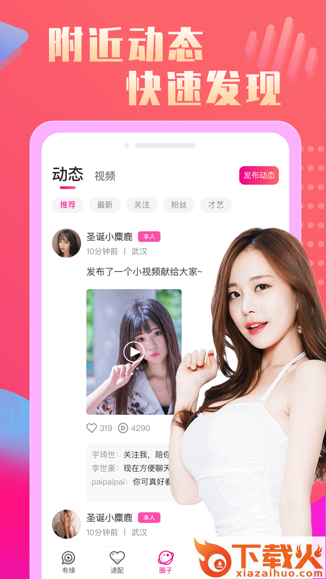 置顶个人信息,让异性第一眼看到你;发布个人心情动态,提高在异性动态圈上的曝光度;精选各类专区,多重推荐和展示,让有缘人极速相识。