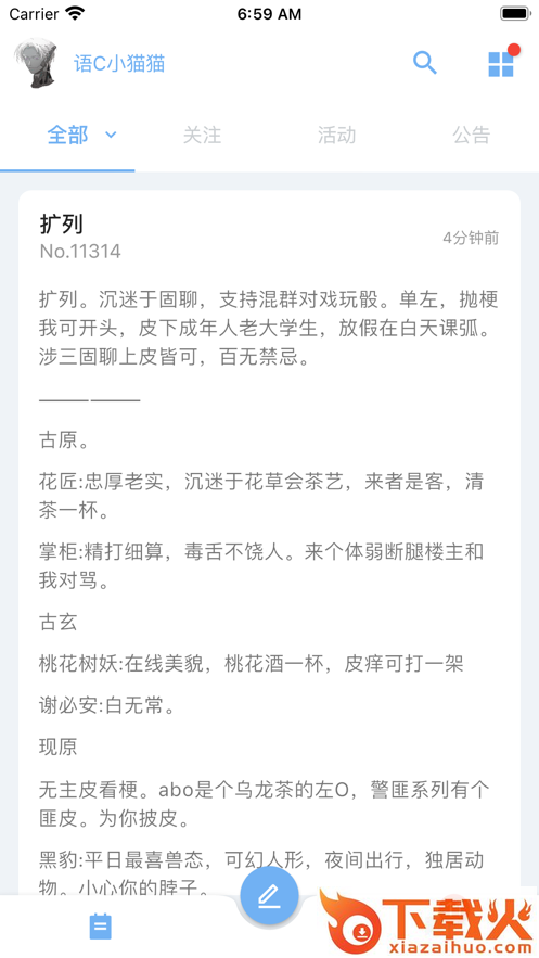 语C扩列app,用户在线互动交友软件,加入感兴趣圈子,探讨感兴趣话题,内容丰富,精彩不断,轻松找同好。加入感兴趣圈子,探讨喜欢的话题。...
