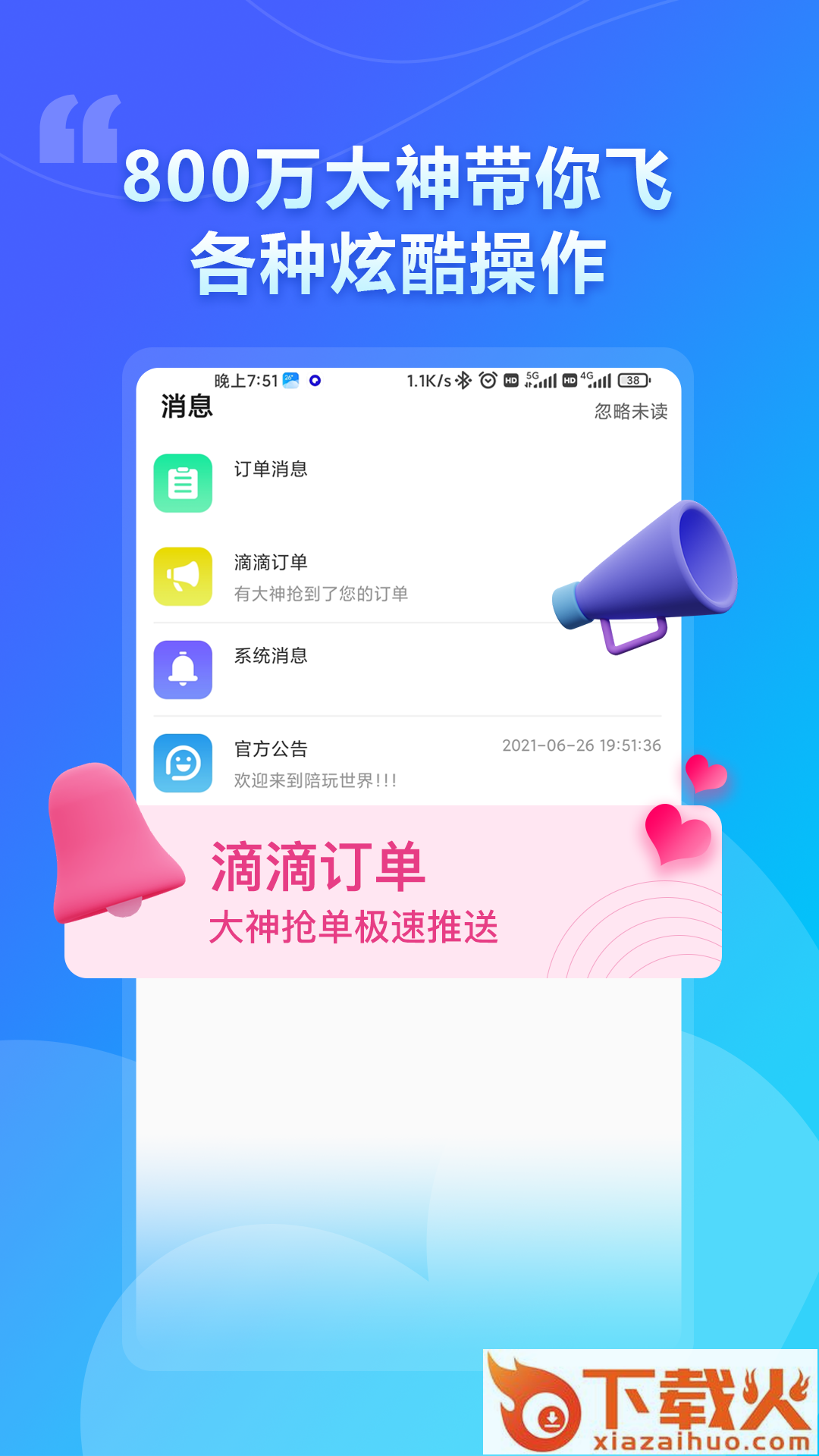 覆盖英雄联盟、王者荣耀、绝地求生、和平精英等热门游戏,24小时随约随玩,在线连麦,畅享欢乐!