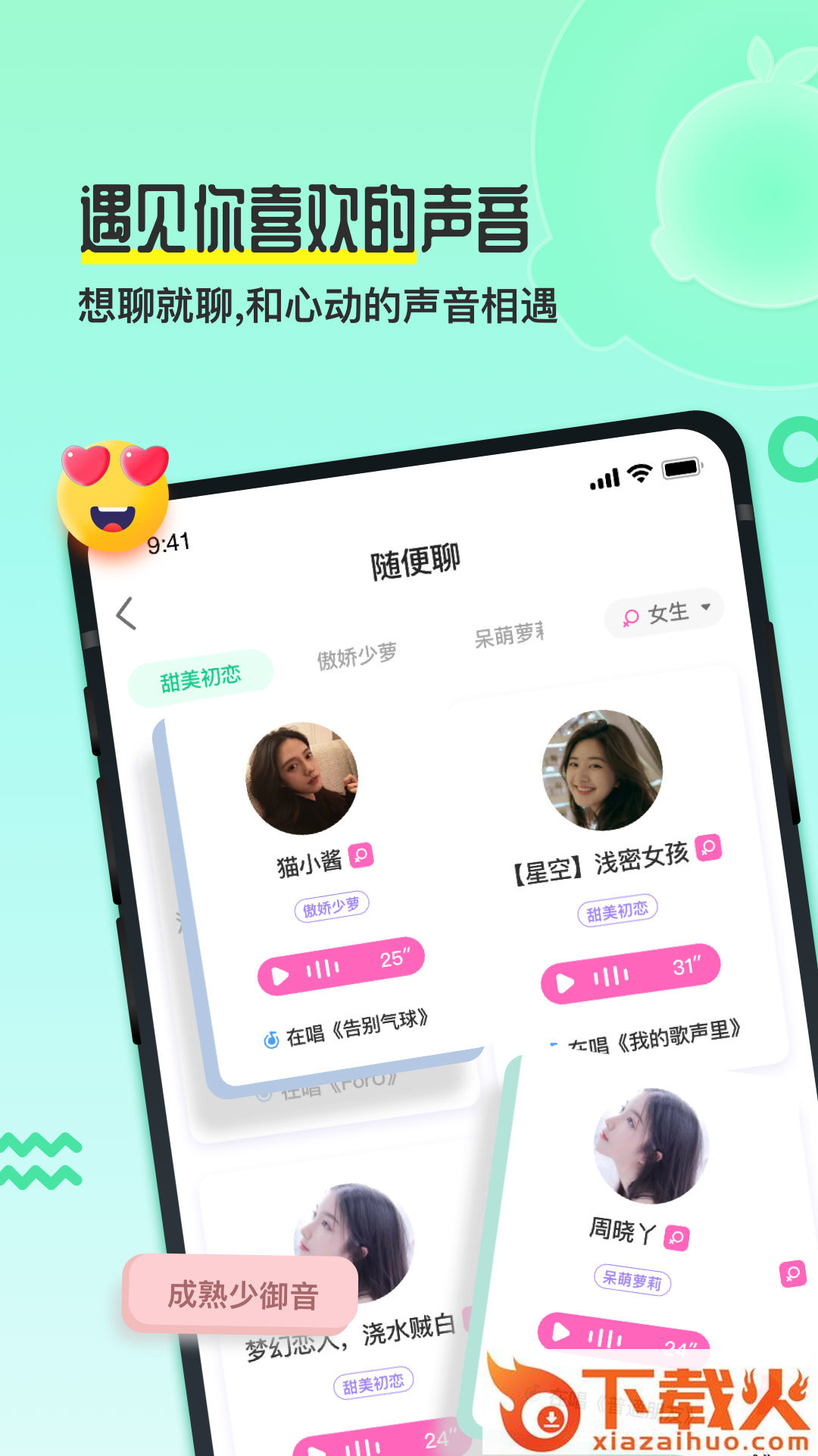 绿色免费软件《心声娱乐》最新版v1.0.0 最新版采用中文展示,适用于Android,软件大小22.5M,下载火软件网提供免费下载安装!