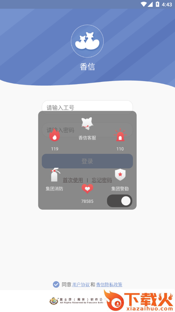 1.启动香信之后,请输入您的工号及预设密码:Foxconn99。