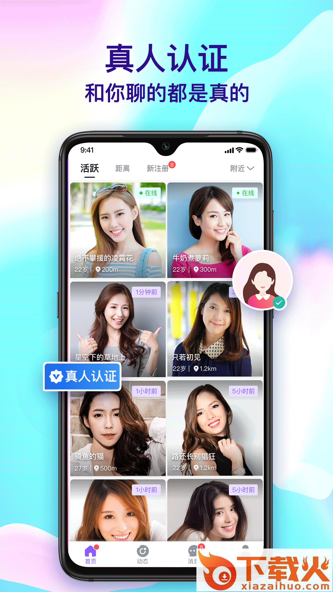 3、真人认证:我们通过活体面容识别技术,建立了完整可靠的认证系统。优先推荐已认证的用户,并有明确的认证标识。在择友,在真实的氛围里交友吧!