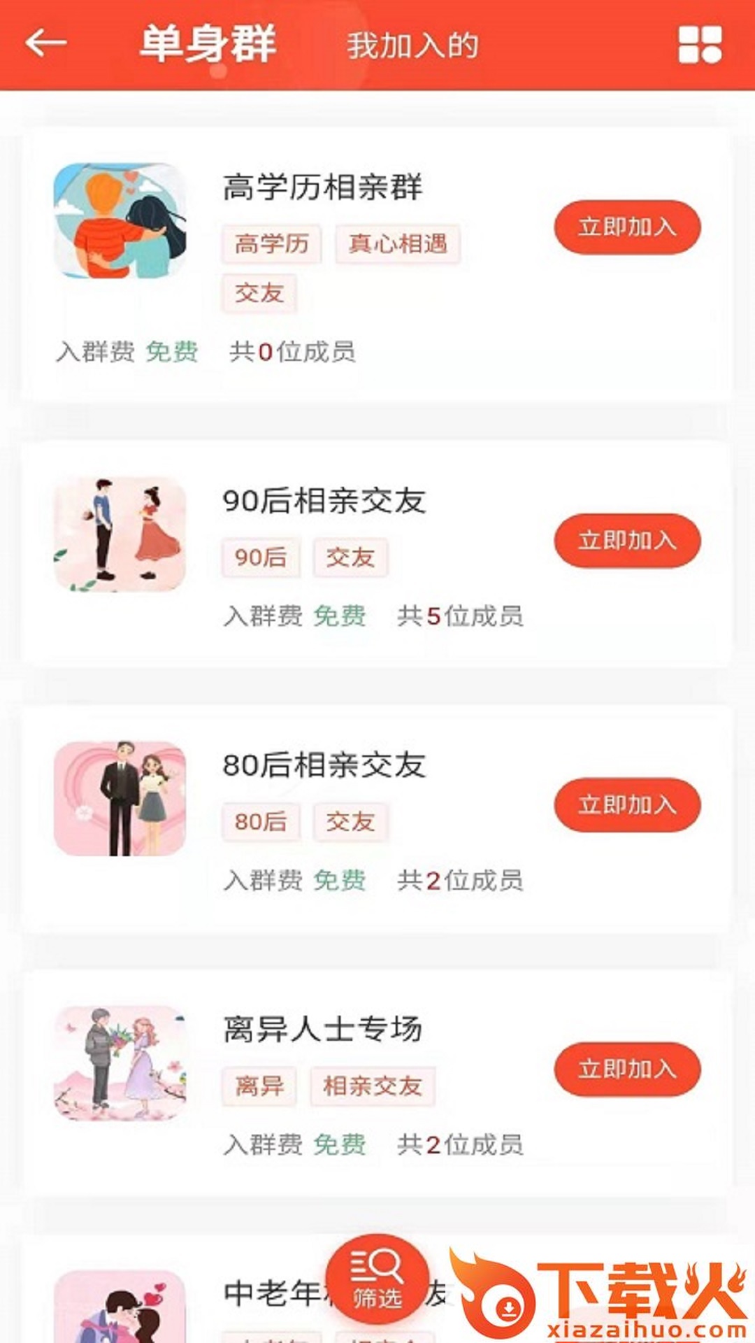 - 加入单身群,认识更多优质单身男女