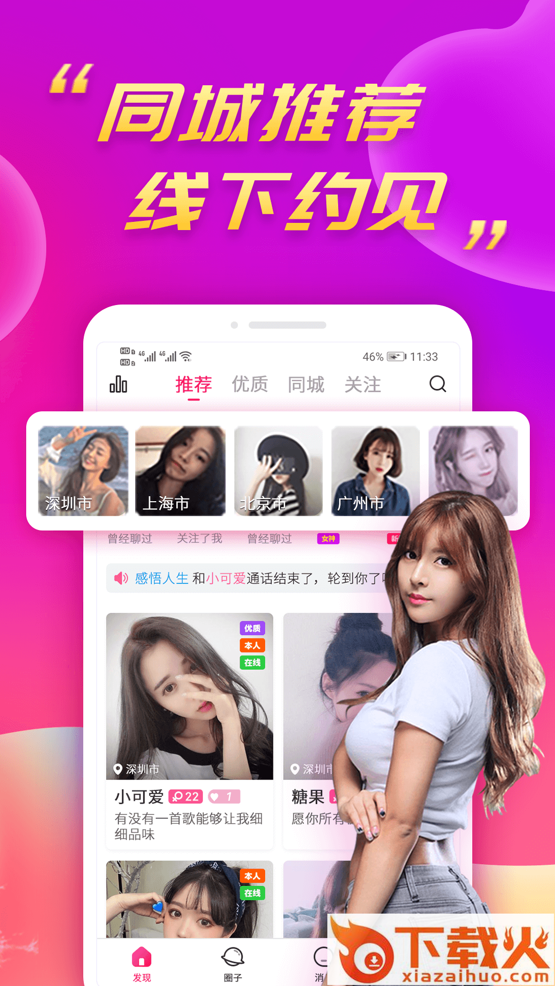 高颜值妹子主动发来视频聊天邀请。与同城兴趣相投的女生畅聊,附近社交、兴趣约会、在线互动,随时随地邂逅审批的朋友。