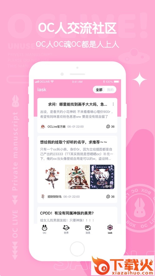 OCLive是一款专为OC人打造的原创角色养成创作社区,为OC人提供一个安全养崽,便捷创作,同好交流,扩列交友的平台!