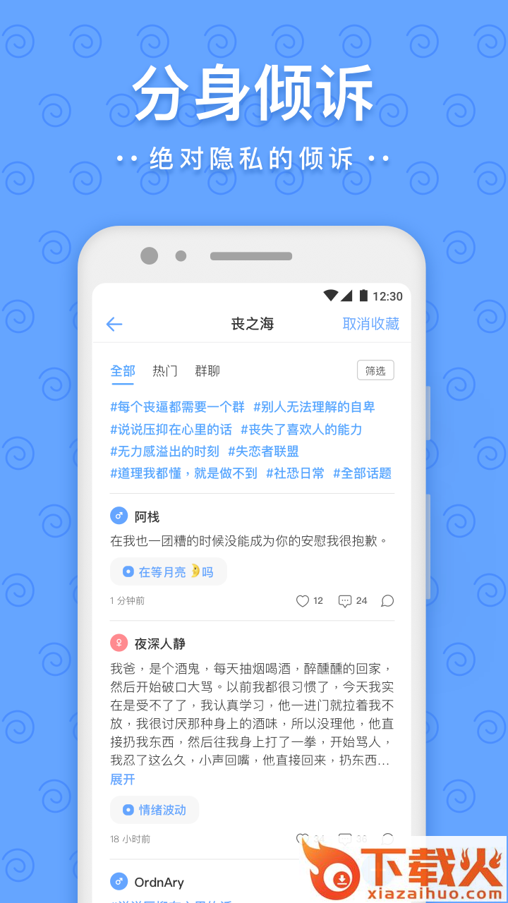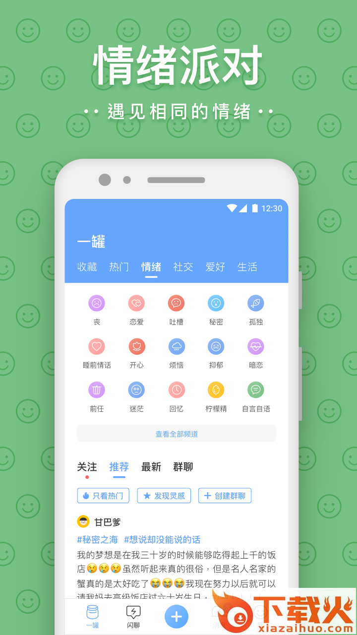 一罐app是款非常独特的社交软件,软件包含多种好用的功能版块,在这你不用担心遇到认识的人,专为有社交恐惧症的用户准备,在这你可以随意吐露真实的情绪。