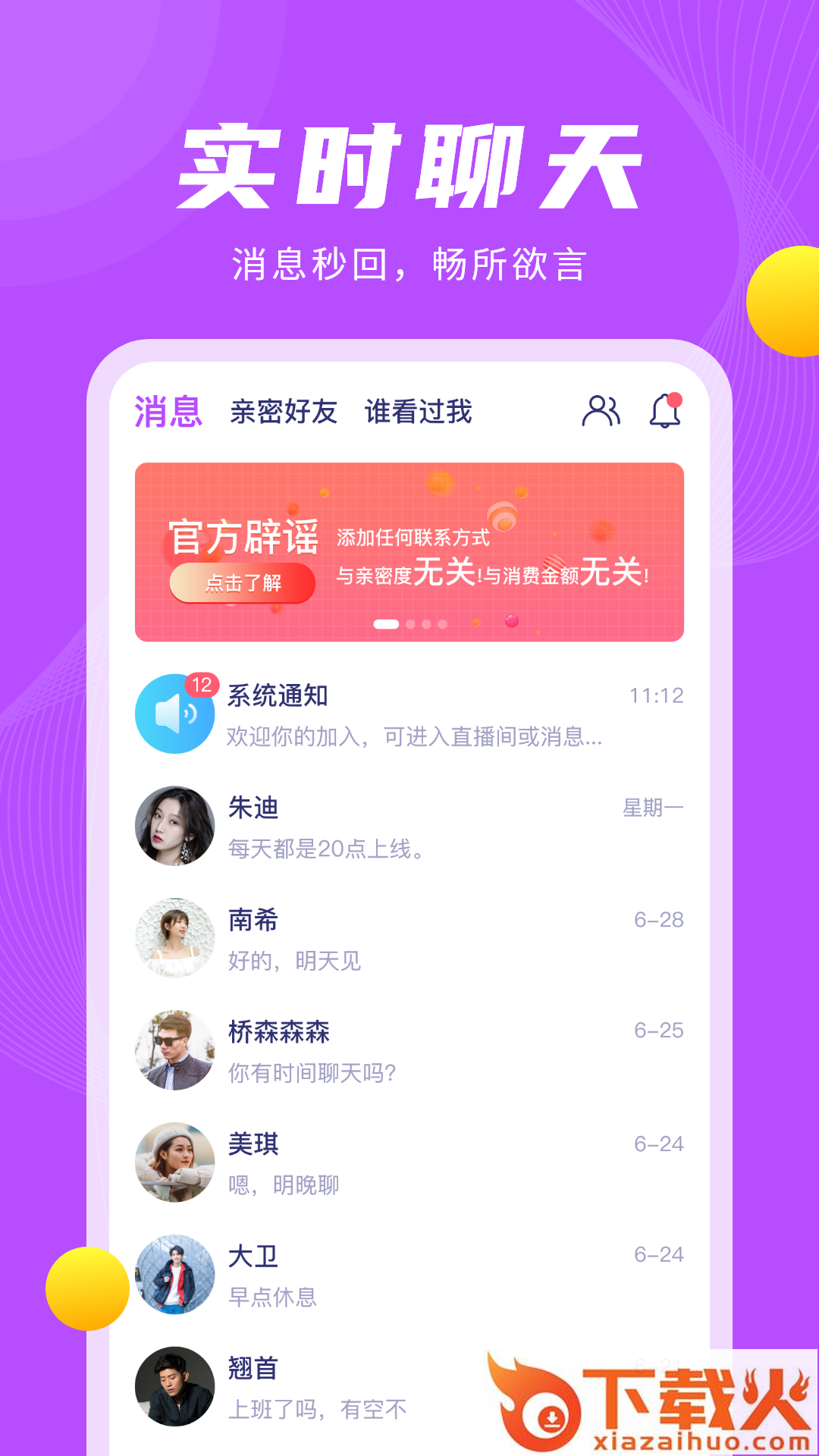 - 实时聊天,消息秒回,畅所欲言;