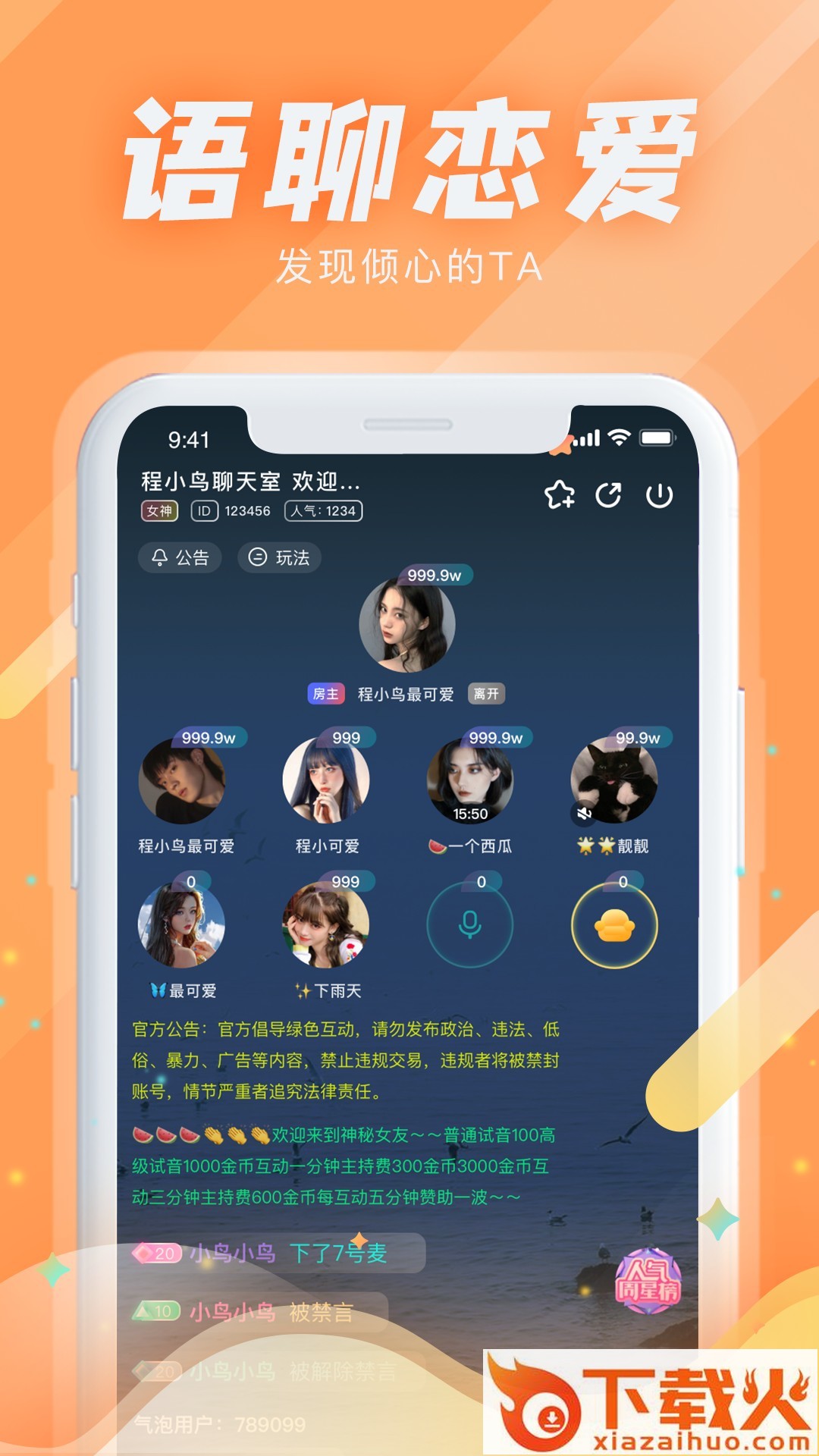 绿色免费软件《聚呀语音社交》最新版v1.1.3 官方版采用中文展示,适用于Android,软件大小31.4M,下载火软件网提供免费下载安装!