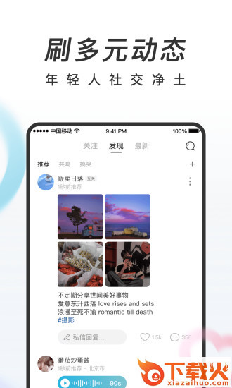 个性化算法推荐,越用越懂你,只有共鸣可以帮你找到能交流的同好,让契合的人相遇。