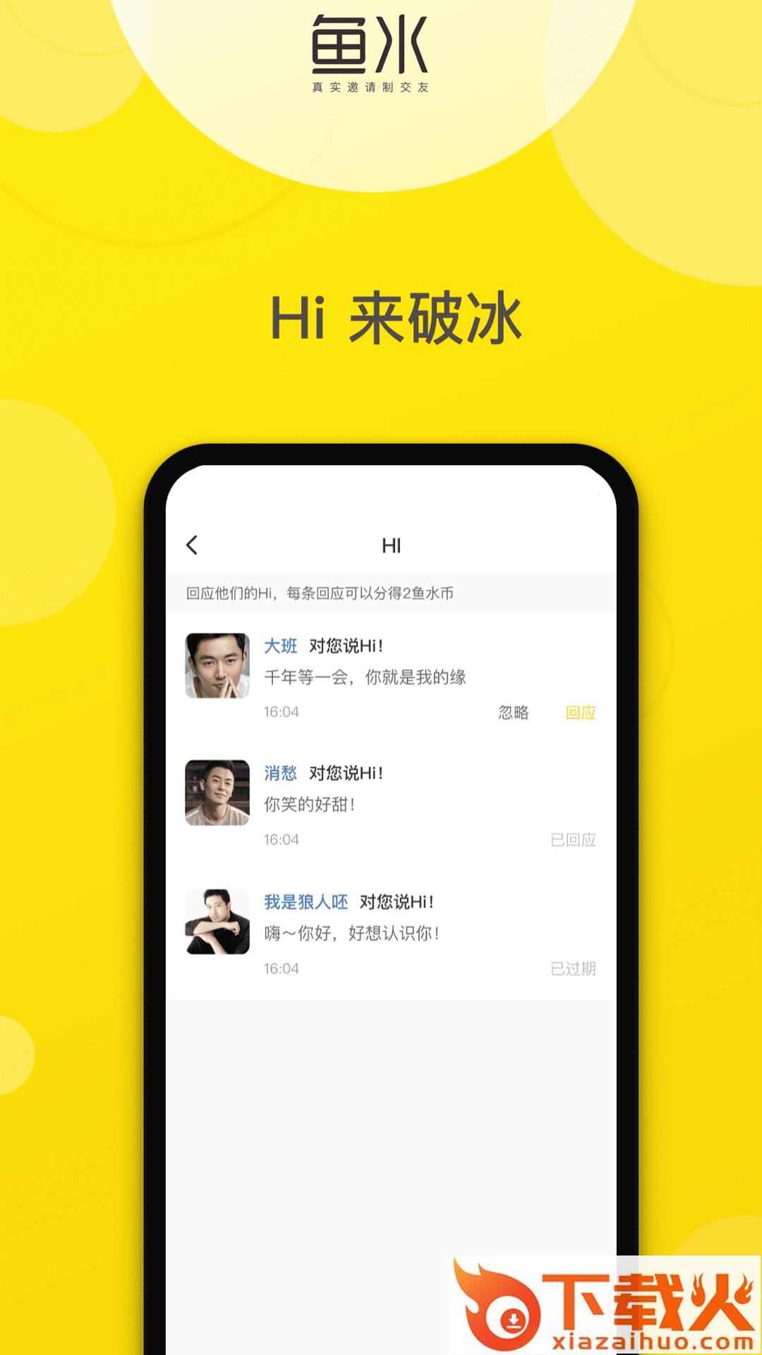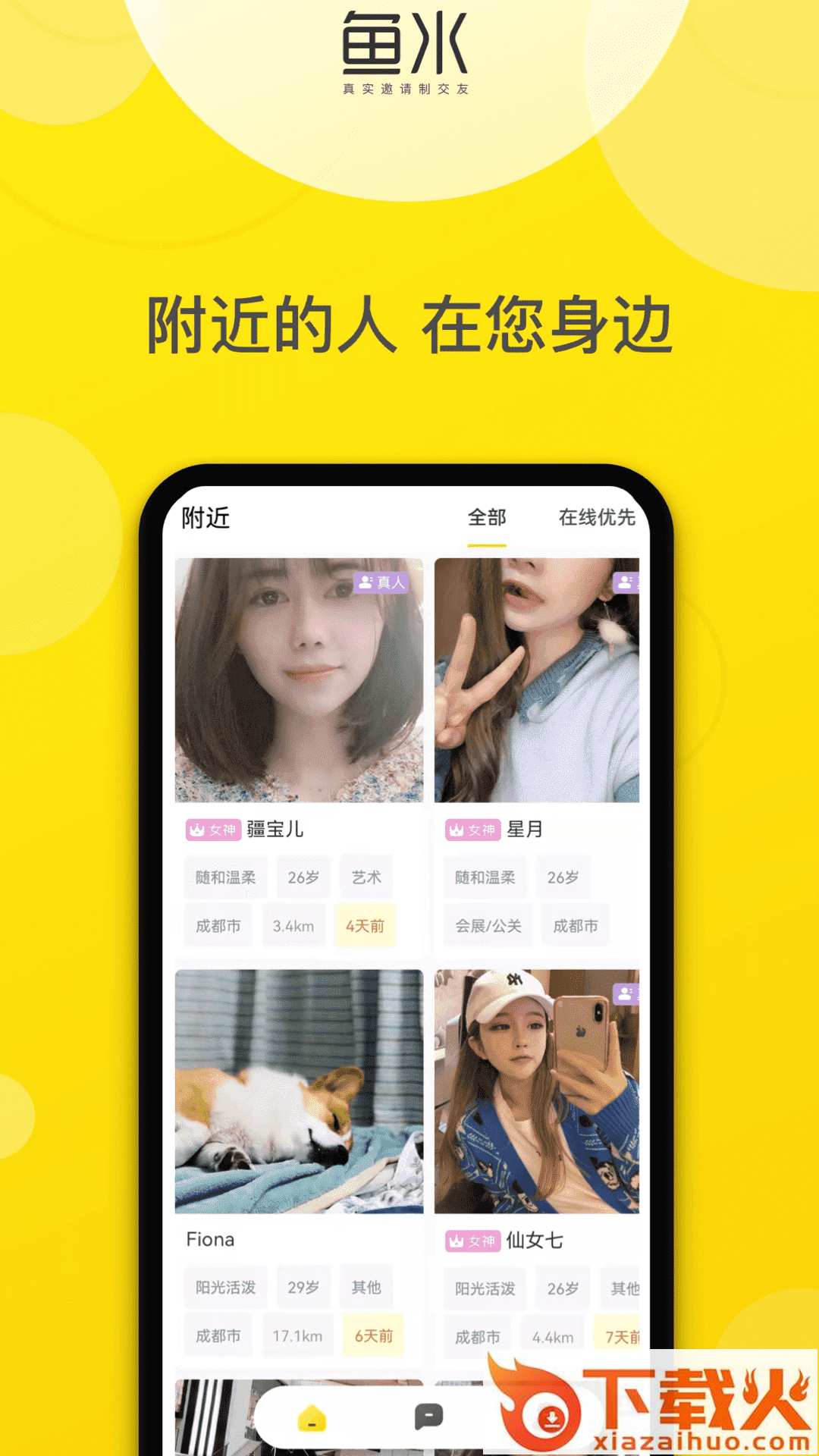 鱼水交友app,真实的邀请交友软件,一键查看附近好友,真人刷脸认证,真实可靠,关注身边好友动态,认识更多新朋友,随时随地在线沟通,交友更放心。