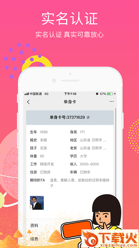 【真材实料】:实名认证,资料详细,信息可靠,遇见爱情。