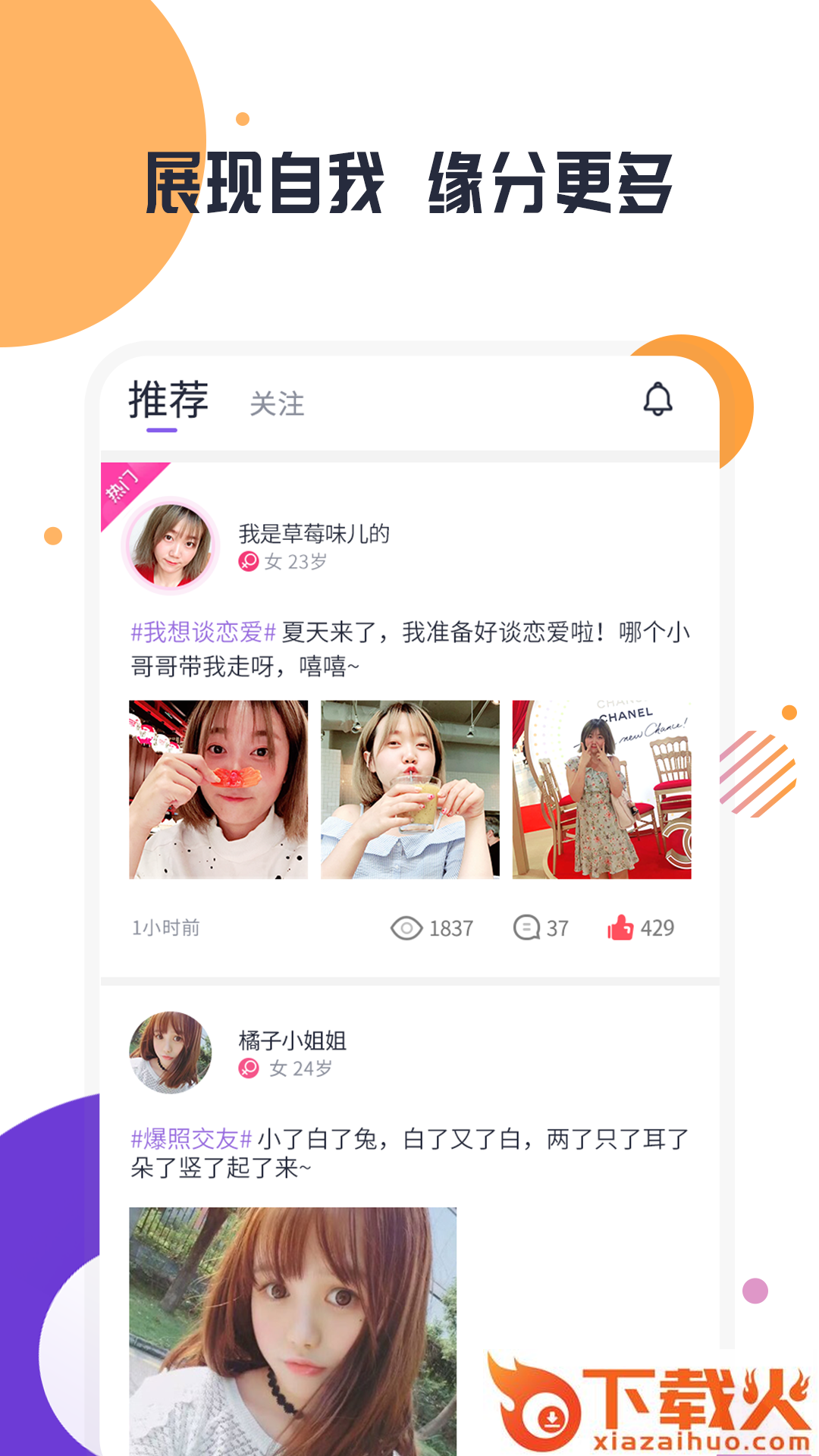 缘分相识app,年轻人在线聊天社交软件,随时查看附近好友,在线聊天沟通,发现附近精彩内容,随时随地在线聊天,认识更多志趣相投小伙伴,聊天交友更轻松。