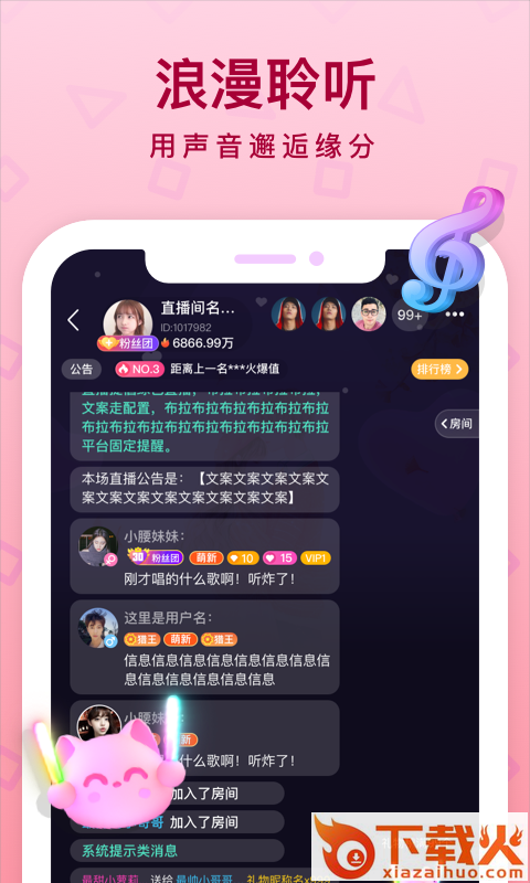 闲聊语音房,为素人主播提供读文与好歌分享。