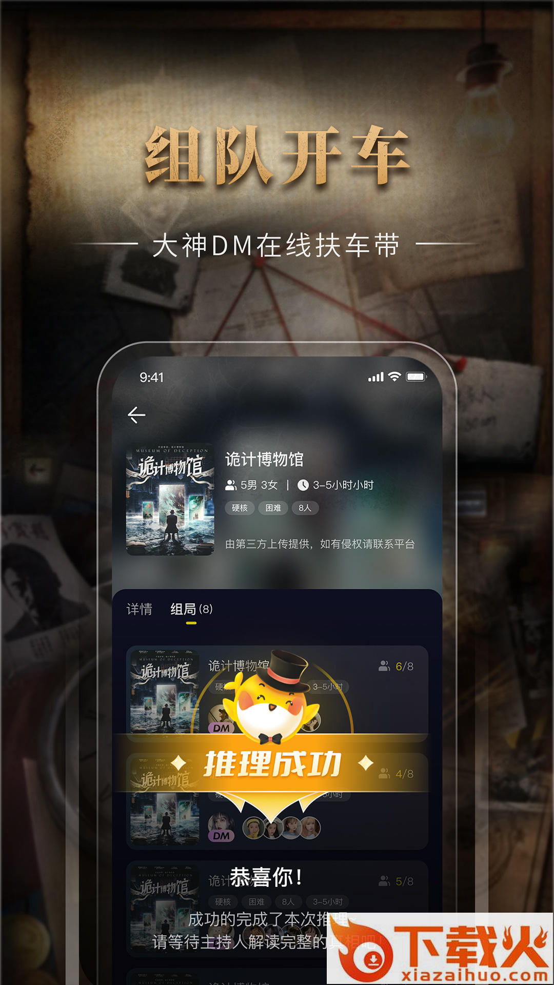 - 海量优质剧本,等你来解锁推理解谜,各类剧本题材应有尽有,还可以邀请好友,一起愉快游戏!