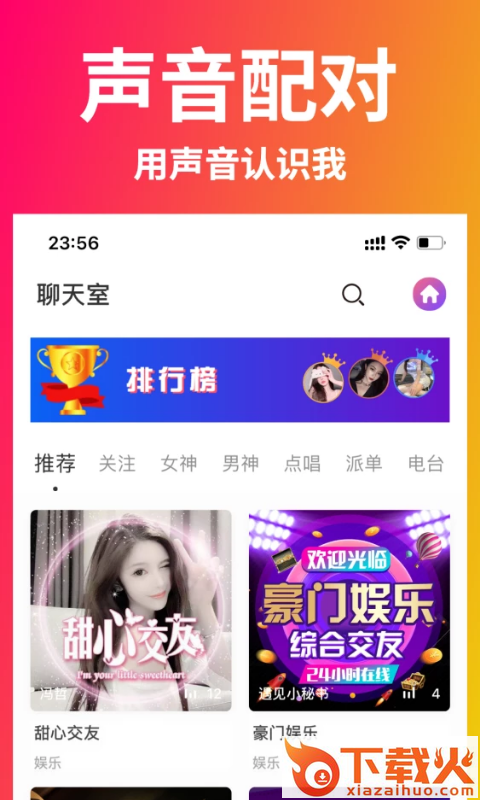 2、绝对是属于广大声音控的福利,不仅可以一起在线互动交友,而且可以在线找陪玩;