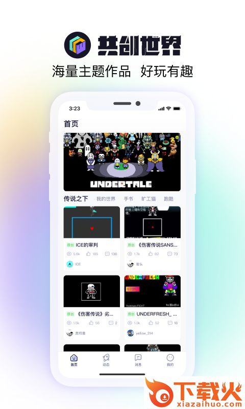 5、在这里,有丰富作品、好玩游戏,传说之下、我的世界,塔防、跑酷、赛车、手书,满足你的每一种喜好。