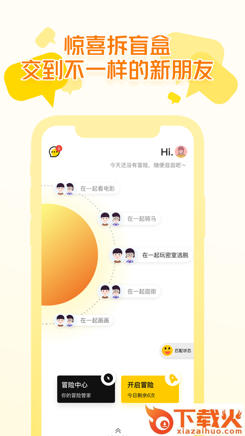 每天一小时高品质社交:认识一个从未接触的人;尝试一件从未玩过的冒险;抛下熟人之间的虚伪,卸下网络空间的防备,探索多元乐趣,拓展生活维度!