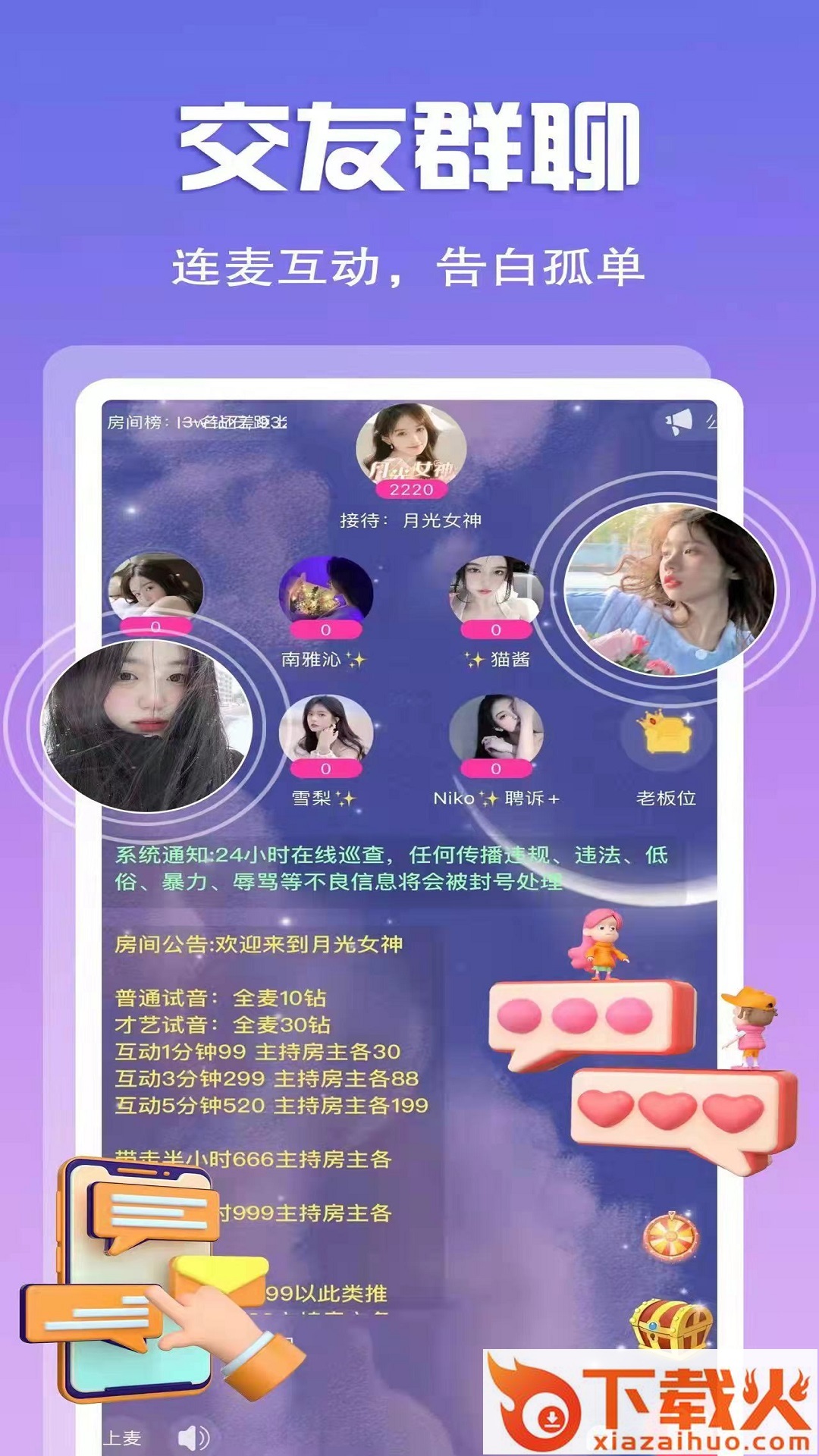 专属头像,和见光死说拜拜。想认识新朋友?有趣的人在这等你。动态广场,展示现自我,让大家更了解你,聊天才有更多话题哦~一个人聊不过瘾?试试语音派对,认真走心,发现合适的另一半。