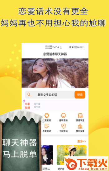 恋爱聊天回复神器app下载,一款帮助大家高效流畅聊天的实用工具,来恋爱聊天回复神器app小伙伴们可以轻松聊天回复,拥有海量话术素材,有需要就来下载。