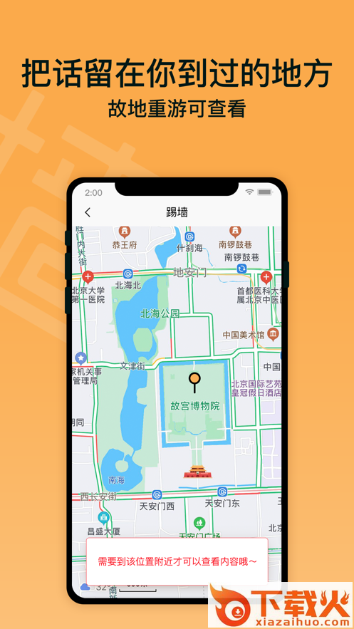 踢墙app下载,一款以地理位置为基础展开的情景社交互动平台,在踢墙app用户可以随时记录当下,可以分享生活出游觅食,更可以感知周围互动交友,欢迎下载。