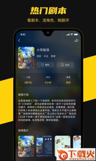 Here App,剧本杀组队聊天交友社区;热门榜单,最新最火剧本单,实时更新;附近店铺,看距离、看环境、选剧本;海量剧本,类目齐全,满足玩家不同口味。