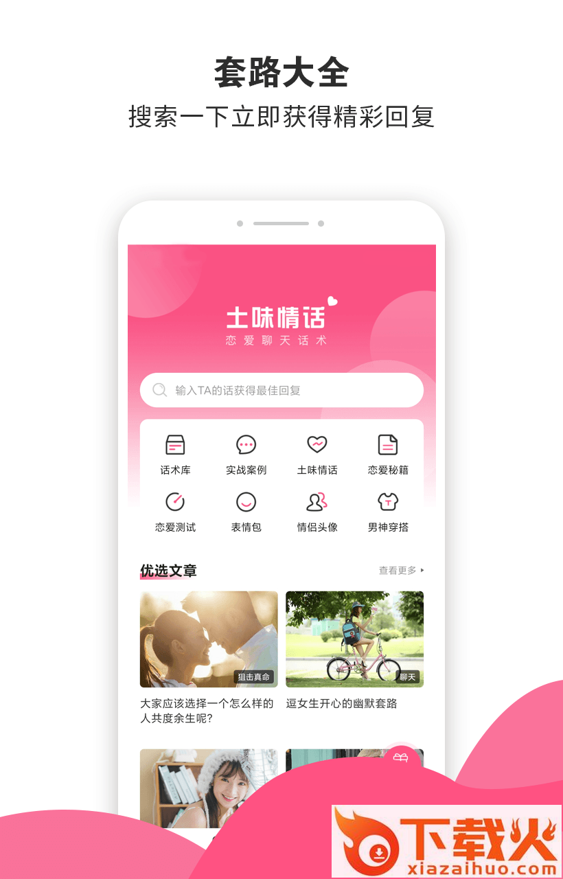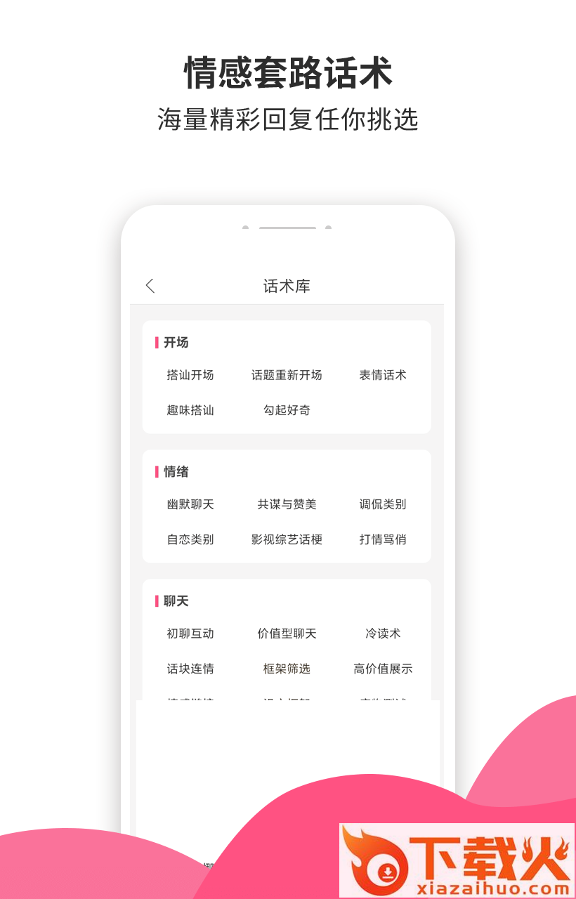 超30万+恋爱聊天话术库,恋爱话术,给你源源不断的聊天灵感,聊天话题,不可多得的聊天宝典,各种聊天套路,助你成为情感高手,最懂你的恋爱话术app